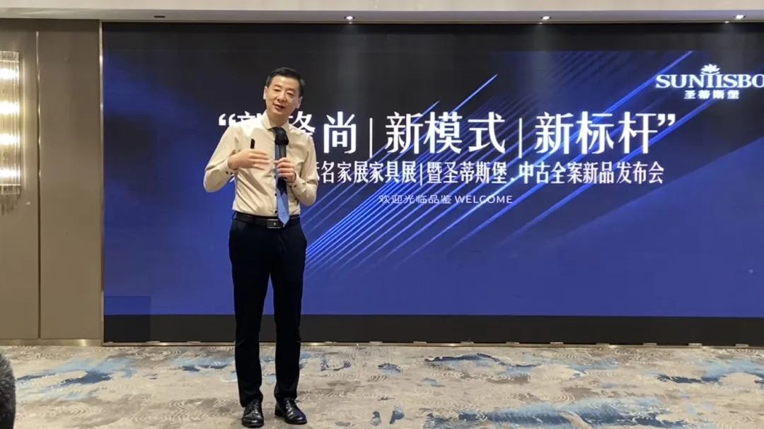 接下来,尊龙旗舰厅工业营销部副经理吴天喜先生为我们重磅揭晓了2025春季新品中古全案系列和新古典全案升级新品,他从选材、设计、风格、工艺等方面进行了全面的讲解,并提到此次中古新品的全案模式是以更具设计感的创新方式,给予消费者整体性的体验感升级,助力大家在激烈的市场竞争中,突显差异化的优势,实现业绩的飞跃式增长。